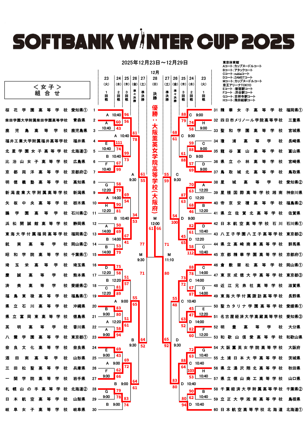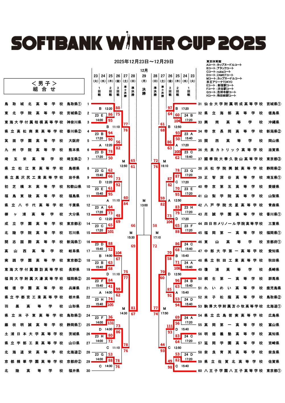 | 12/24 水 | 男子1回戦・女子2回戦 |