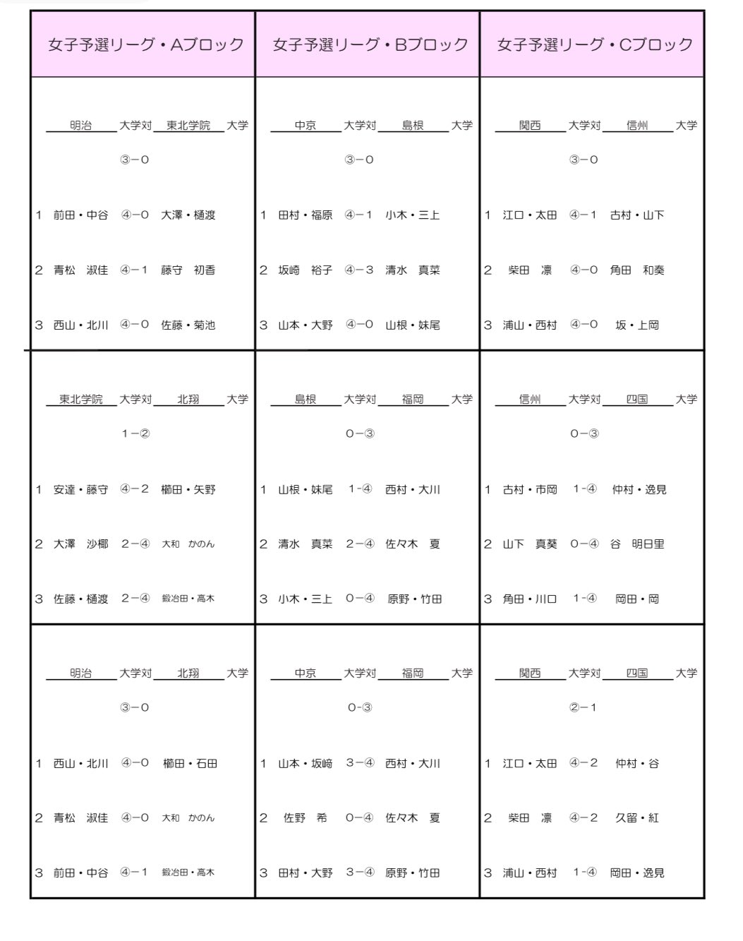 結果速報・全日本大学ソフトテニス王座決定戦2019