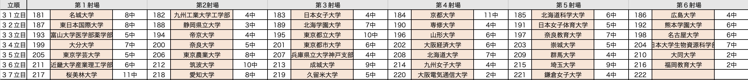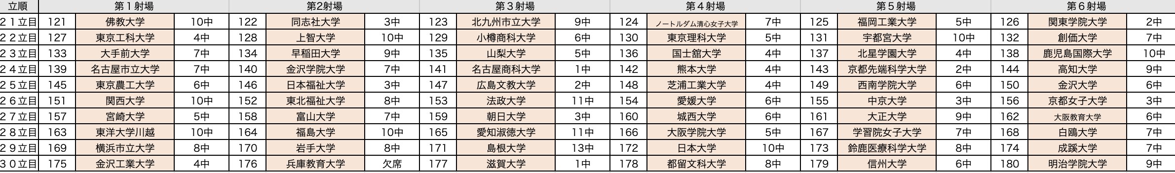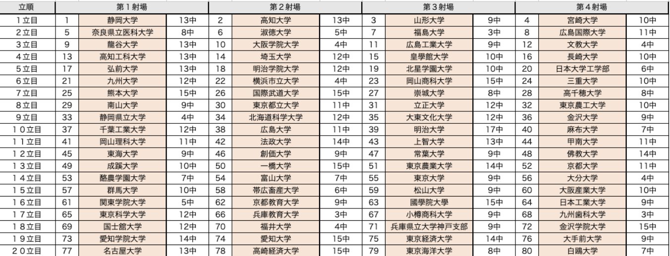 学生連盟 | DAY1 前射場・後射場 DAY2 前射場・後射場 DAY3 前射場・後射場 DAY4 遠的 |