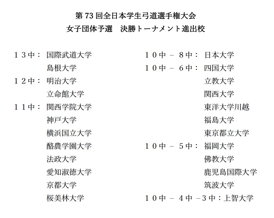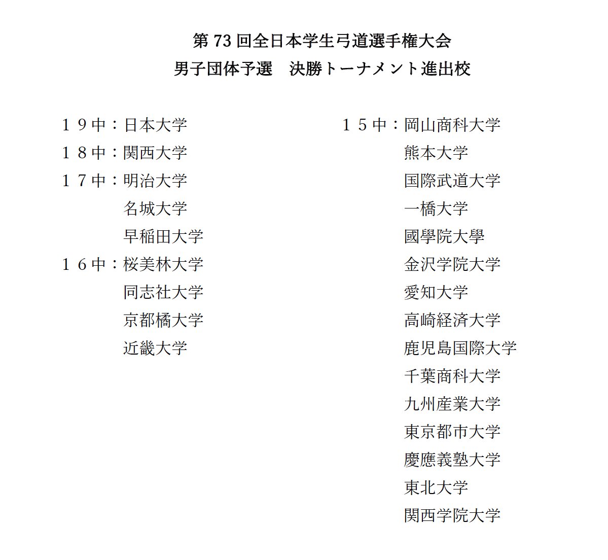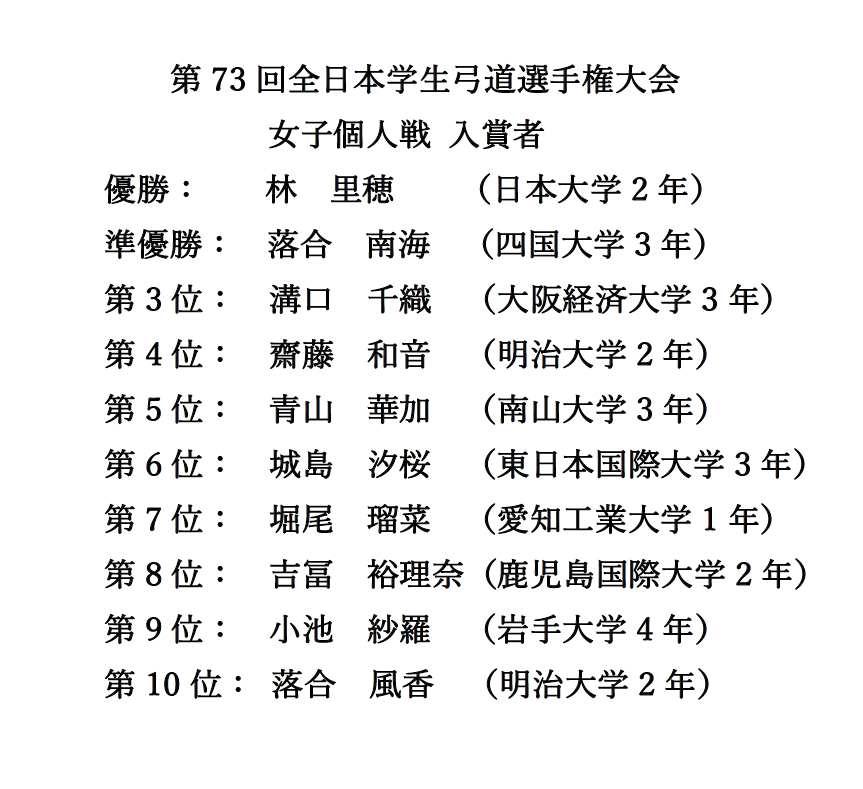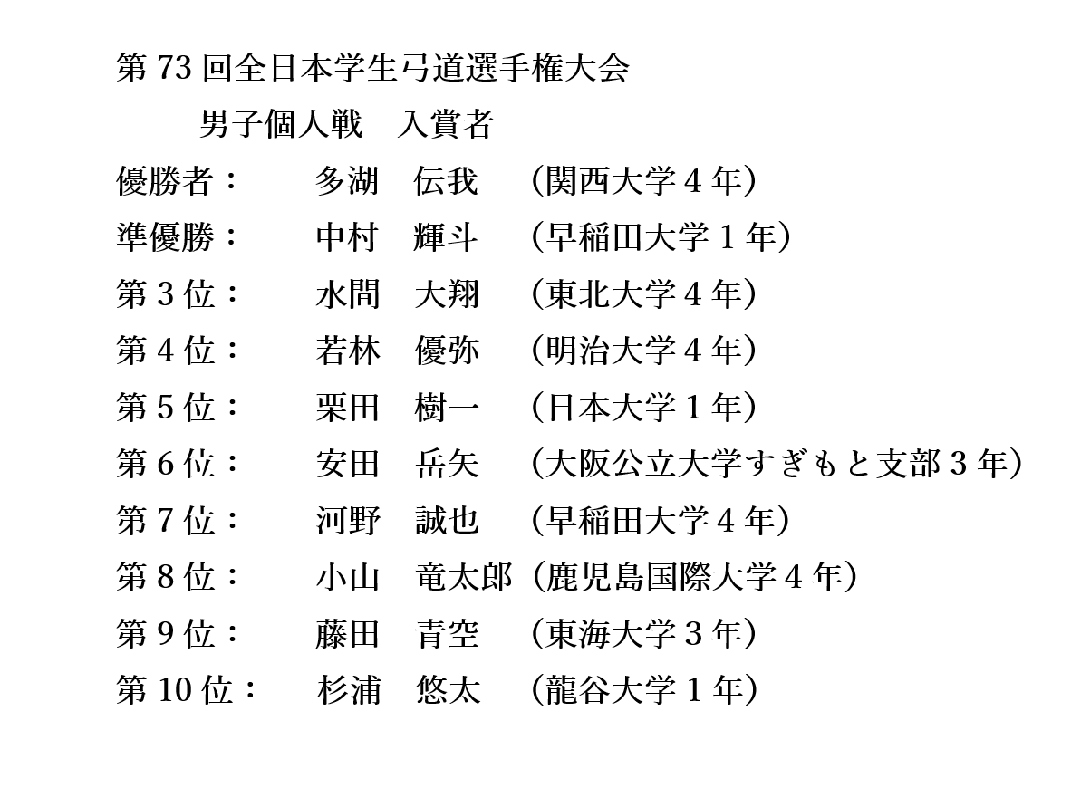 第 73 回全日本学生弓道選手権大会 (近的大会)